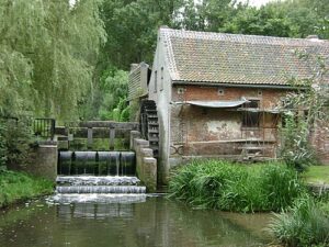 glooiende Pajottenland. Door het bospaadje langs de Mark en over- en het vlonderpad bereiken we de Sintwaltrudiswatermolen. Aangekomen op de rustpost kan men even op krachten komen.